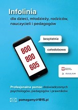 800 800 605 - ruszyła całodobowa bezpłatna infolinia dla dzieci, młodzieży, rodziców i pedagogów „Pomagamy”