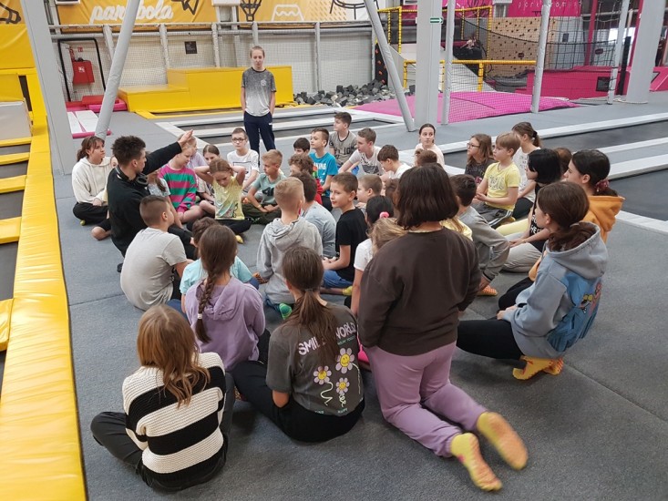 Aktywna lekcja wychowania fizycznego w parku trampolin "Parabola""